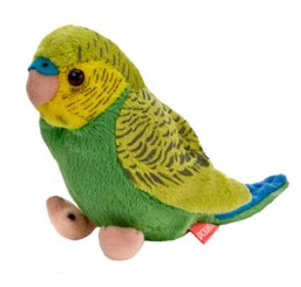 Zelený vlnitý papoušek je v životní velikosti. Byl vyroben z nejkvalitnějších materiálů s důrazem na detail. Měkký plyš na dotek vybízí k hlazení a mazlení. Lesklé hnědé oči jsou vyrobeny z plastu. Celkový vzhled je velmi realistický, takže maskot je krásnou dekorací do každého dětského pokoje. Papoušek je vhodný i jako kamarád na hraní a díky svým malým rozměrům ho lze vzít téměř kamkoli s sebou.