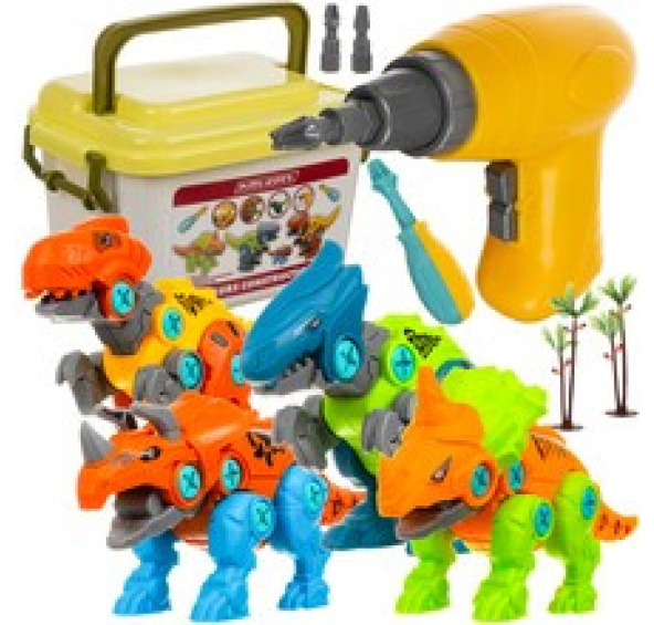 Stavebnice dinosaurů, sada 4v1 pro otáčení šroubovákem nebo šroubovákem pro chlapce a dívky!