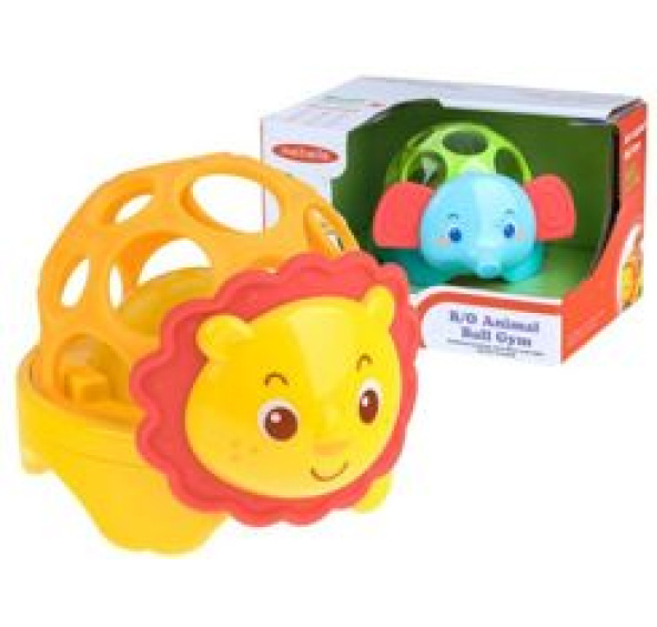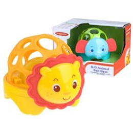 Barevná safari zvířata. Uvnitř zvířátka je míček, který svítí a při hře vydává veselý zvuk. Hračka má pružný ažurový design a měkké uši nebo hřívu.