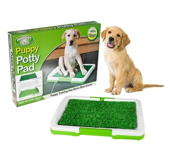 Toaleta pro štěňata a malé psy - užitečná např. v situaci, kdy povětrnostní podmínky neumožňují vyvenčit psa venku. Vlastnosti produktu: - zcela nový, vysoce kvalitní produkt - toaleta navržená s ohledem na štěňata a psy menších plemen - řešení v případě nemožnosti vyvenčení zvířete venku - syntetická, měkká výstelka toalety nepoškozuje psí tlapky, nepohlcuje pachy, je antibakteriální - snadno se čistí - užitečná pro výuku hygieny mladých psů - stabilní, tříprvková konstrukce (umělá tráva, mřížka propouštějící tekutiny, spodní nádoba) rozměry: 46 x 34 x 6 cm Počet kusů. na paletě: 108
