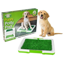Toaleta pro štěňata a malé psy - užitečná např. v situaci, kdy povětrnostní podmínky neumožňují vyvenčit psa venku. Vlastnosti produktu: - zcela nový, vysoce kvalitní produkt - toaleta navržená s ohledem na štěňata a psy menších plemen - řešení v případě nemožnosti vyvenčení zvířete venku - syntetická, měkká výstelka toalety nepoškozuje psí tlapky, nepohlcuje pachy, je antibakteriální - snadno se čistí - užitečná pro výuku hygieny mladých psů - stabilní, tříprvková konstrukce (umělá tráva, mřížka propouštějící tekutiny, spodní nádoba) rozměry: 46 x 34 x 6 cm Počet kusů. na paletě: 108
